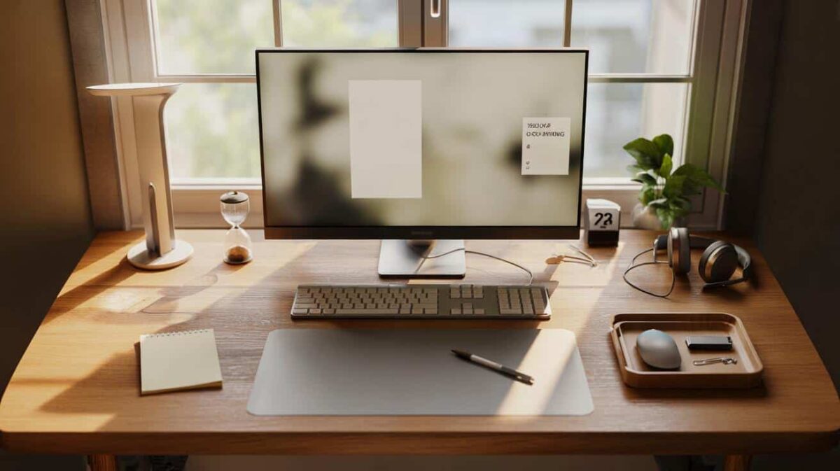 Zwischen Kaffeetasse, Ladekabeln und Post-its verschwimmt der Fokus, bis nur noch der reflexhafte Griff zum Handy übrig bleibt. Wir alle