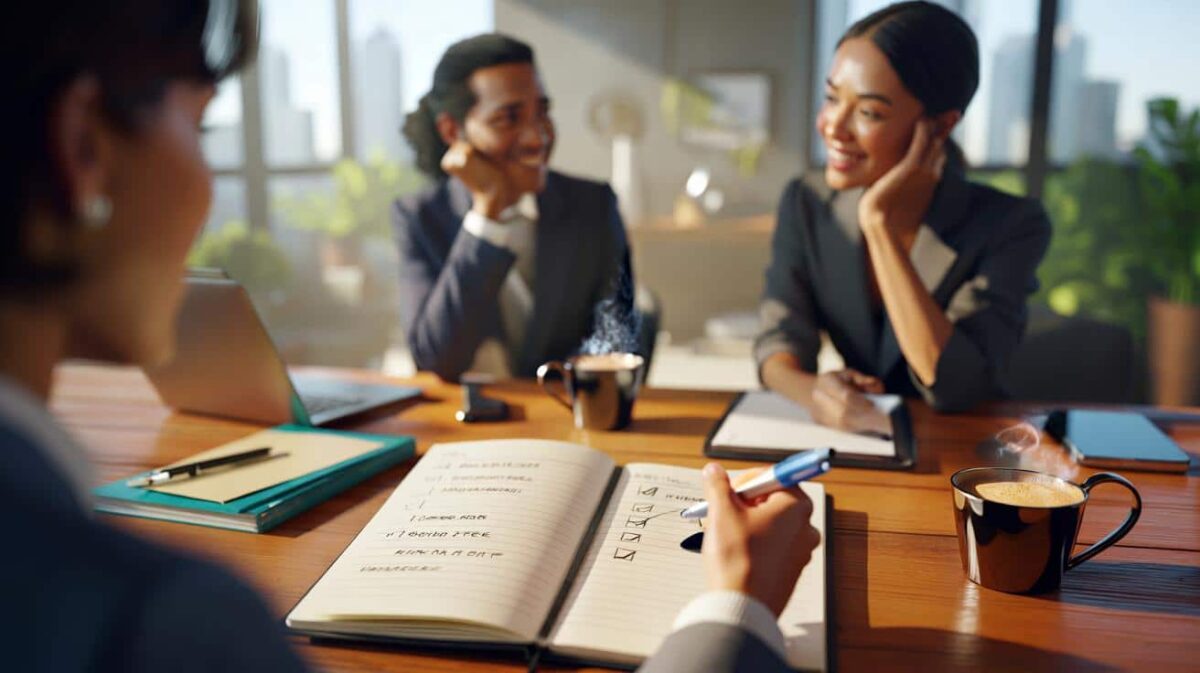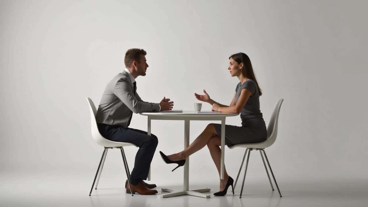 Vor dir ein Menschenpaar aus HR und Fachabteilung, freundlich, aufmerksam, ein bisschen unergründlich. Die Mappe vor dir ist ordentlich, der