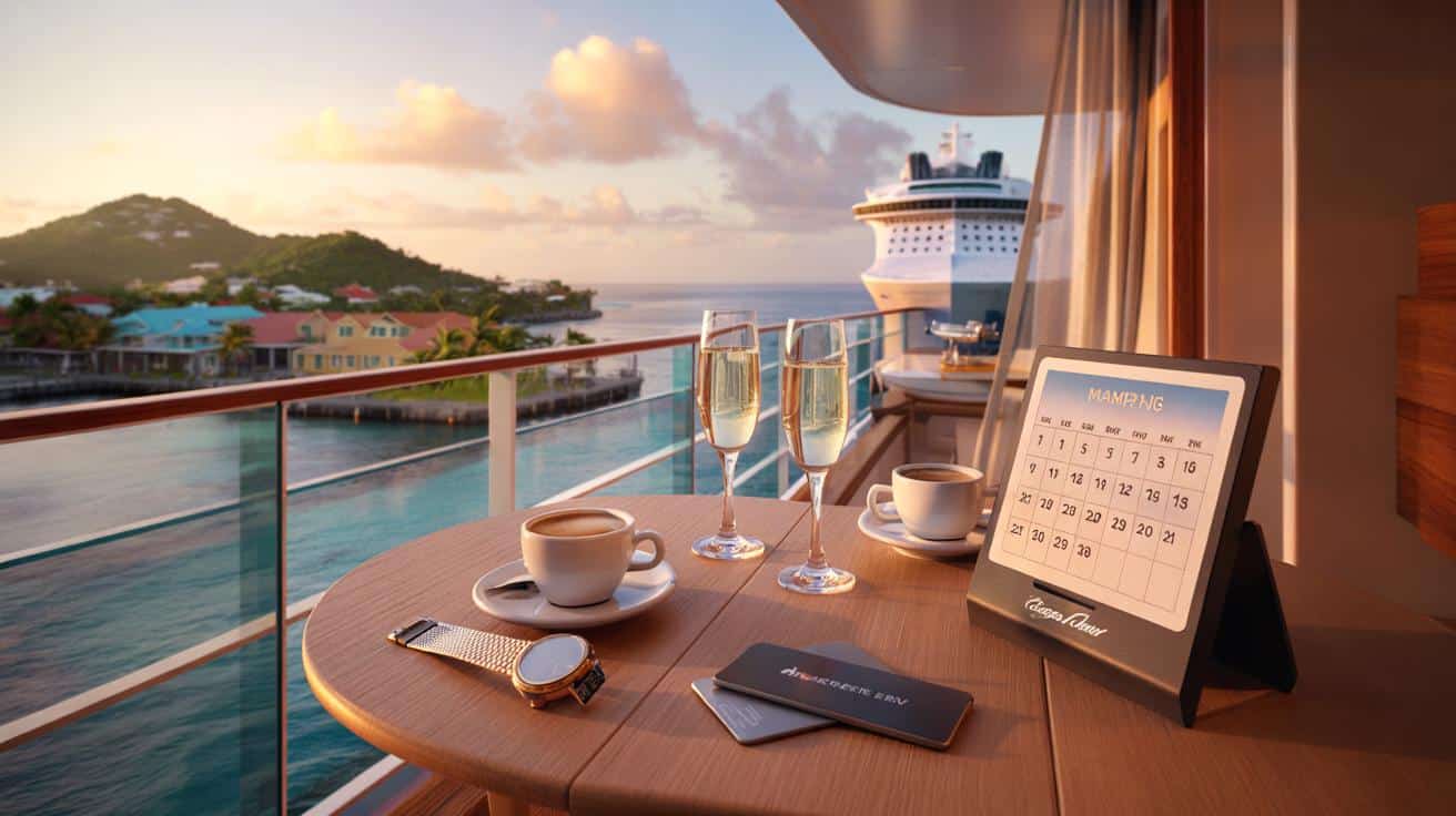 Es ist noch früh, die Reling ist kühl, der Himmel rosa. Neben mir am Deck, zwei Tassen Kaffee, erzählt ein Paar vom Zufall, der keiner war: Sie hatten elf Monate vorher gebucht, die Balkonkabine zum Preis einer Innenkabine, Bordguthaben on top. Ich sehe, wie die Sonne den Hafen von St. Maarten aufblitzen lässt, und merke, wie sich eine Idee festkrallt. Früh buchen ist kein Mut, es ist Timing. Diese leise Gewissheit, wenn man spürt: Jetzt passt alles zusammen. Später, beim Frühstück, fallen Zahlen und Doppelklicks. Ein Reisekalender, ein Preisalarm, ein freier Urlaubseintrag. Die Uhr tickt.