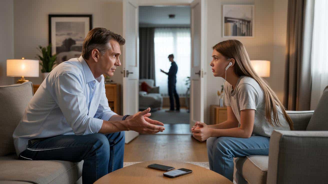 Die 14-jährige Mia knallt die Tür zu, weil sie das Handy abgeben soll. Ihr Vater hebt die Stimme. Beide reden gleichzeitig, niemand hört zu. Ein klassischer Familienmoment, der sich erschreckend vertraut anfühlt. Worte werden härter, Blicke kälter, alle sind verletzt, niemand kommt voran.