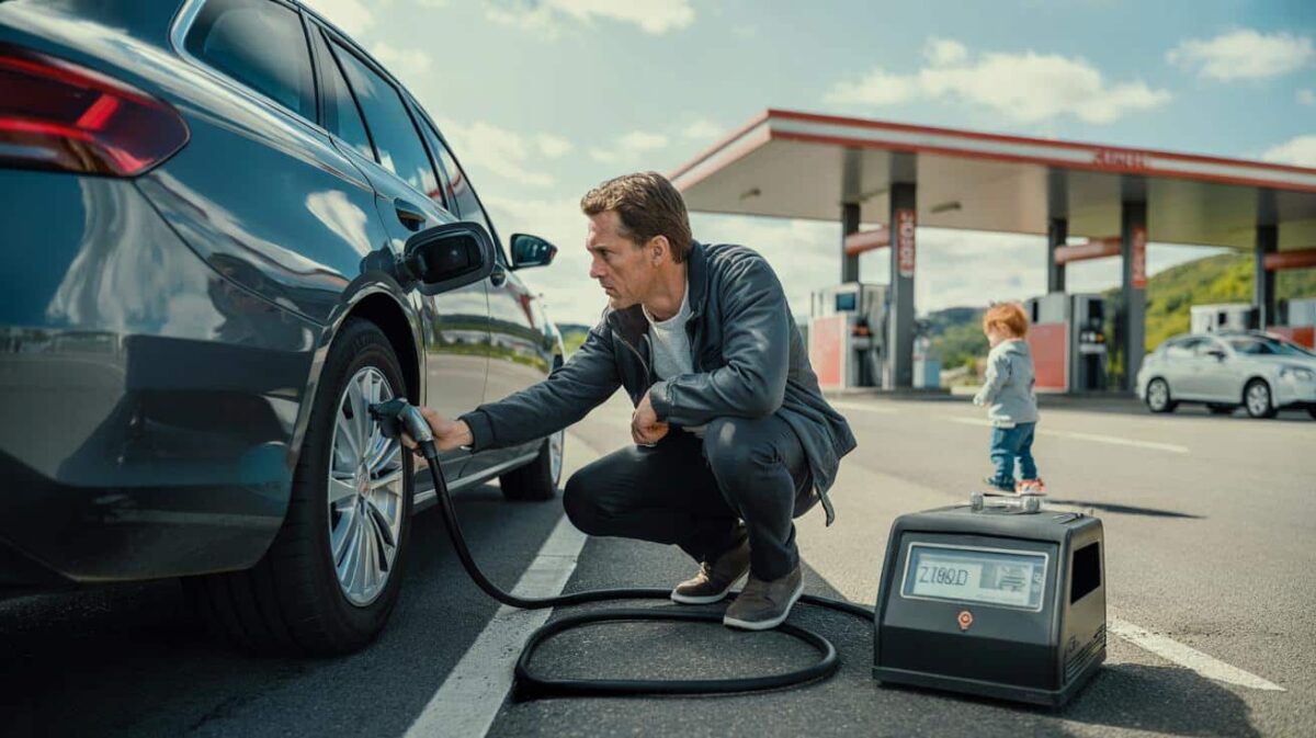 Nebenan klickt eine andere Pistole in den Tank, irgendwo ruft ein Kind nach einem Eis. Der Fahrer blickt flüchtig auf
